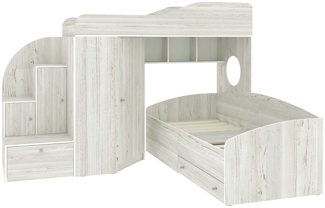 Кровать чердак Кадет 2 оснащен двумя спальными местами, необычными ступенями с дверцами для хранения игрушек и угловым шкафом для одежды и белья. Данная модель подойдет как для детей младших классов, так и для детей более старшего возраста. Такая кровать поразит вас своей компактностью, вместительностью и практичностью. Основные параметры: - Кроватный модуль, размеры (Д*Г*В): 257*204*172см - Верхнее спальное место: 800*1900 мм - Нижнее спальное место: 900*2000 мм - Угловой шкаф, размеры (Д*Г*В): 832*832*1350 мм - Лестница, размеры (Д*Г*В): 646*832*1350 мм - Высота борта: 350 мм - Рекомендованная высота матраса: 50-150 мм Материалы, используемые при изготовлении:Ламинированная ДСП, края лестницы, борта кровати декорированы противоударной кромкой ПВХ.На цветных фасадах: цвет кромки - бежевый. Модель универсальна - сторона определяется при сборке. Матрасы в комплект не входят - приобретаются отдельно.Характеристики