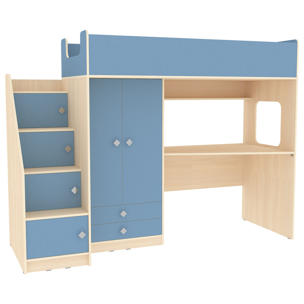 Вы можете купить Кровать-чердак КарИВи Л-А606.3 75x175 Дуб Молочный Светло-синий, голубой оптом в нашем магазине, предложим цену с оптовой скидкой.