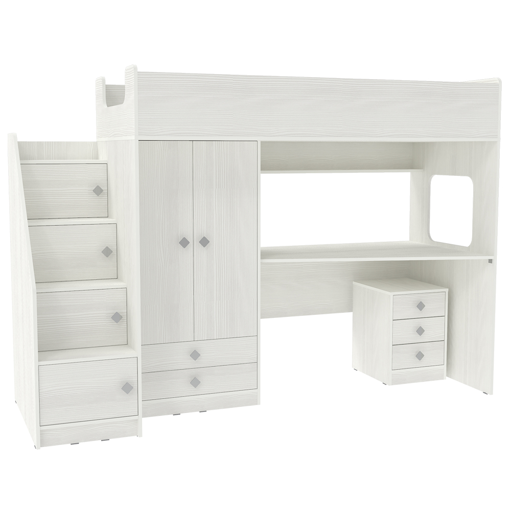Кровать-чердак Л-A606.3 с тумбой 80х190 Белое Дерево Белое Дерево