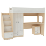 Кровать-чердак Л-A606.3 с тумбой 80х190 Дуб Молочный Белое Дерево