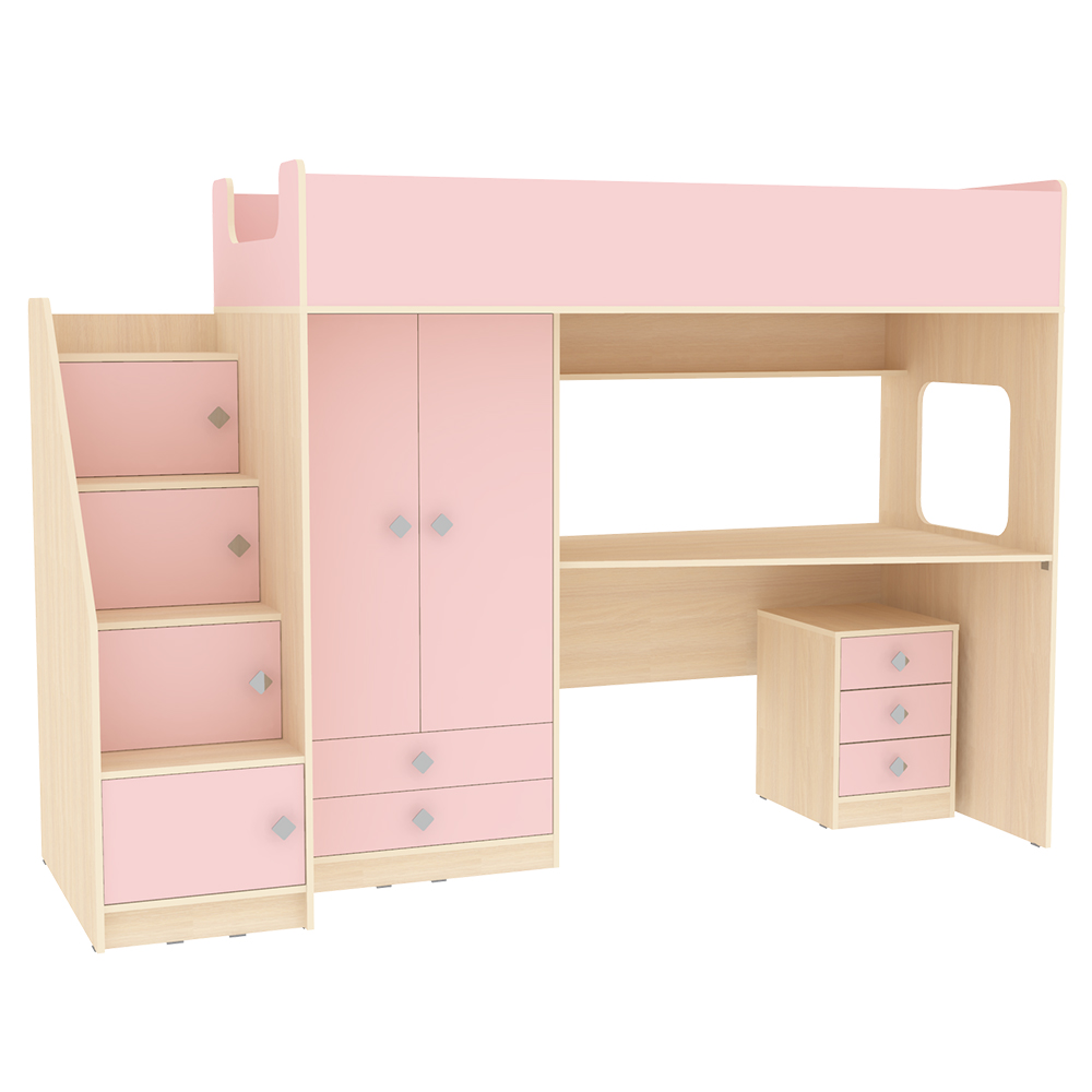 Вы можете купить Кровать-чердак КарИВи Л-A606.3 с тумбой 80х190 Дуб Молочный Розовый оптом в нашем магазине, предложим цену с оптовой скидкой.