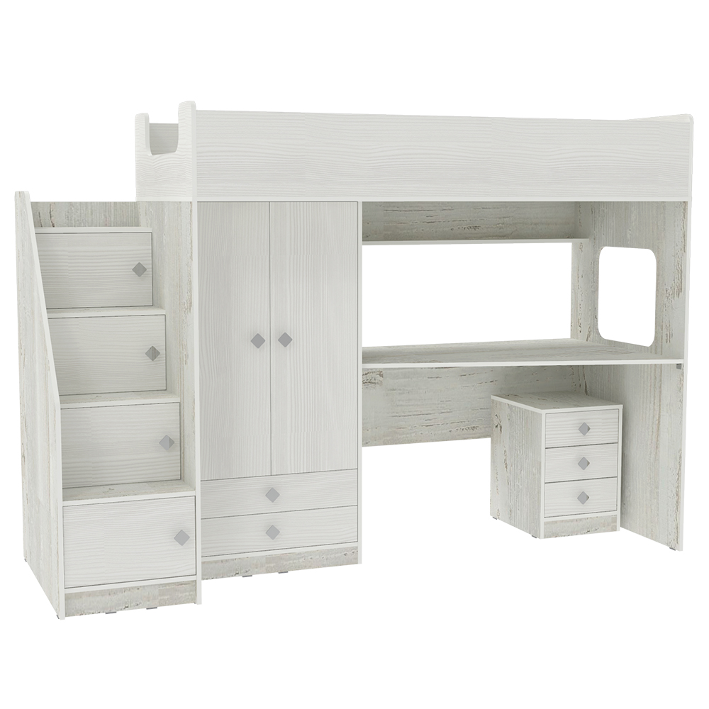 Вы можете купить Кровать-чердак КарИВи Л-A606.3 с тумбой 80х190 Винтерберг Белое Дерево оптом в нашем магазине, предложим цену с оптовой скидкой.