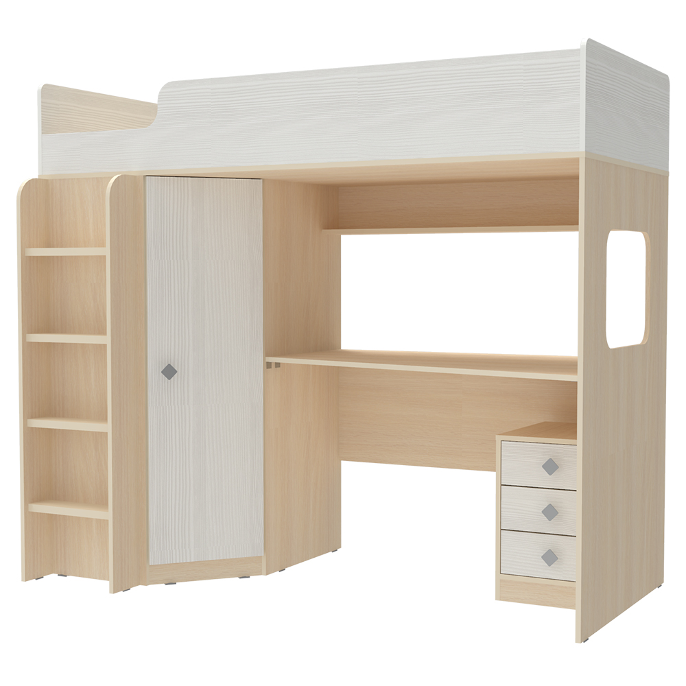 Вы можете купить Кровать-чердак КарИВи Л-B605.41 с тумбой 80х190 Дуб Молочный Белое Дерево оптом в нашем магазине, предложим цену с оптовой скидкой.