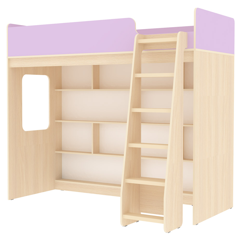 Кровать чердак Л-C601.2– великолепный комплект мебели, решение для площади малых габаритов, экономия пространства. Комплект занимает немного места - решение для площади малых габаритов, экономия пространства. Высота кровати чердака всего 1677 мм. Под спальным местом располагается игровая зона – свой уголок для ребенка. В игровой зоне располагается стеллаж, отлично подходящий для хранения игрушек. Это очень удобно для поддержания порядка и сортировки предметов. Два световых окна прямоугольной формы - дополнительное освещение, элемент для игры и возможность родителям наблюдать за ребенком. В комплект входит прямая лестница со ступенями из массива сосны. По вашему выбору комплект может быть собран как на левую, так и на правую сторону.Характеристики
