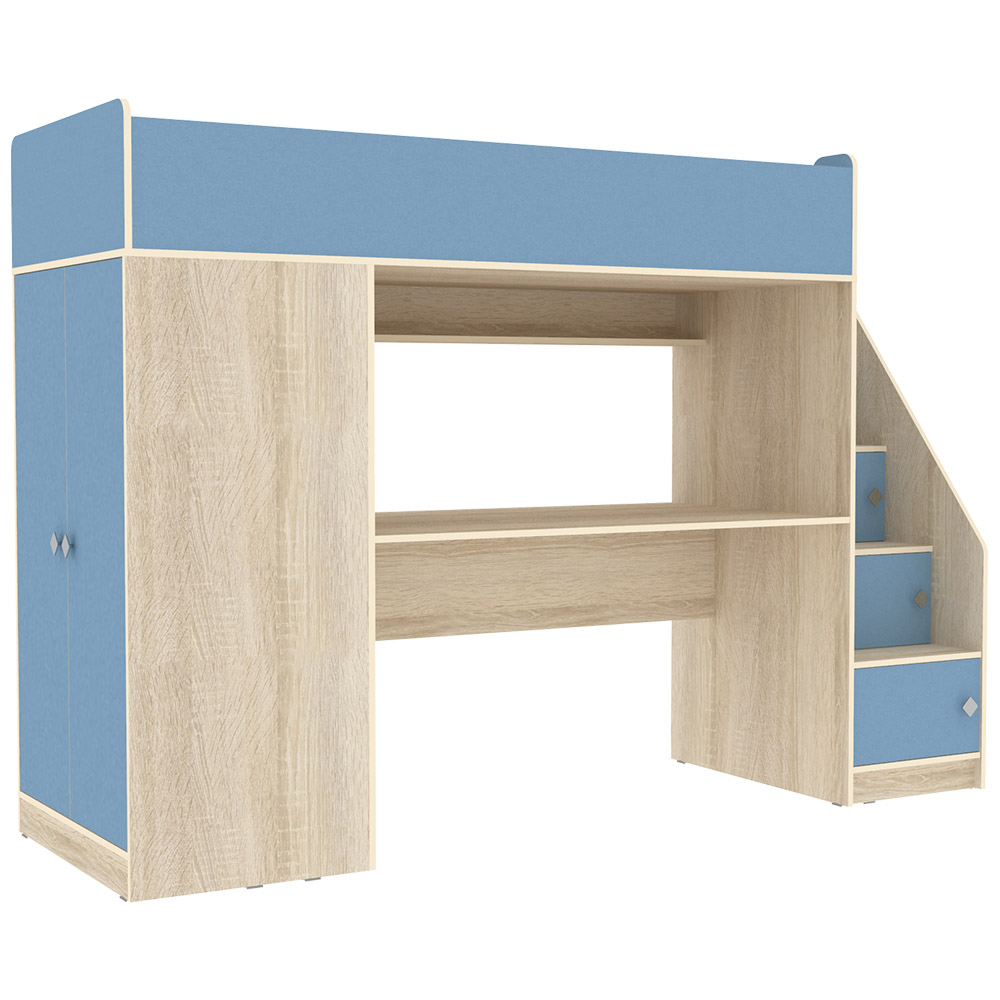 Кровать-чердак Л-Ф606.3 75х190 Дуб Сонома Светло-синий, голубой