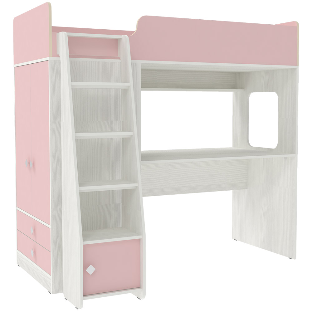 Кровать-чердак Л-Ф607.1 75х190 Белое Дерево Розовый