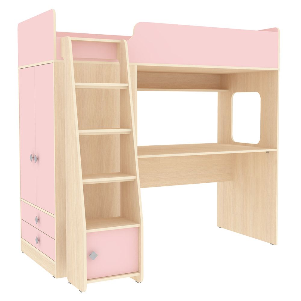 Вы можете купить Кровать-чердак КарИВи Л-Ф607.1 75х190 Дуб Молочный Розовый оптом в нашем магазине, предложим цену с оптовой скидкой.