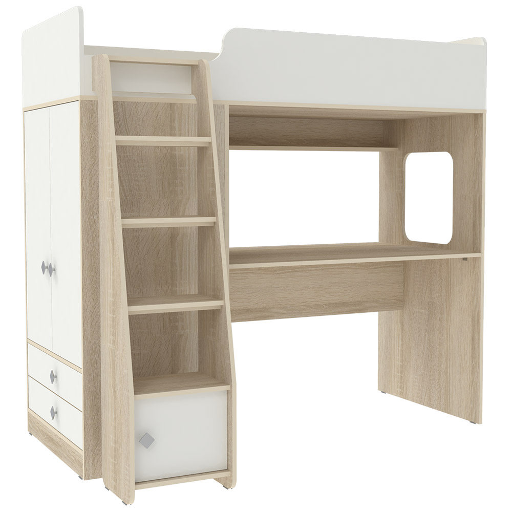 Кровать-чердак Л-Ф607.1 75x175 Дуб Сонома Белый