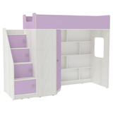Кровать чердак Л-В602.3 – великолепный комплект мебели, решение для площади малых габаритов, экономия пространства. Комплект занимает немного места - решение для площади малых габаритов, экономия пространства. Высота кровати чердака 1677 мм. Под спальным местом располагается игровая зона – свой уголок для ребенка. В игровой зоне располагается стеллаж, отлично подходящий для хранения игрушек. Это очень удобно для поддержания порядка и сортировки предметов. Вместительный угловой шкаф для хранения одежды, белья, игрушек или иных вещей. Световое окно прямоугольной формы - дополнительное освещение, элемент для игры и возможность родителям наблюдать за ребенком. Интегрированная угловая лестница оснащена боковым бортиком и местами для хранения с ручками плавной формы, без острых углов. Мягкий противоударный кант – дополнительная безопасность для детей.Все цветные фасады со светло-бежевой кромкой. По вашему выбору комплект может быть собран как на левую, так и на правую сторону.Характеристики