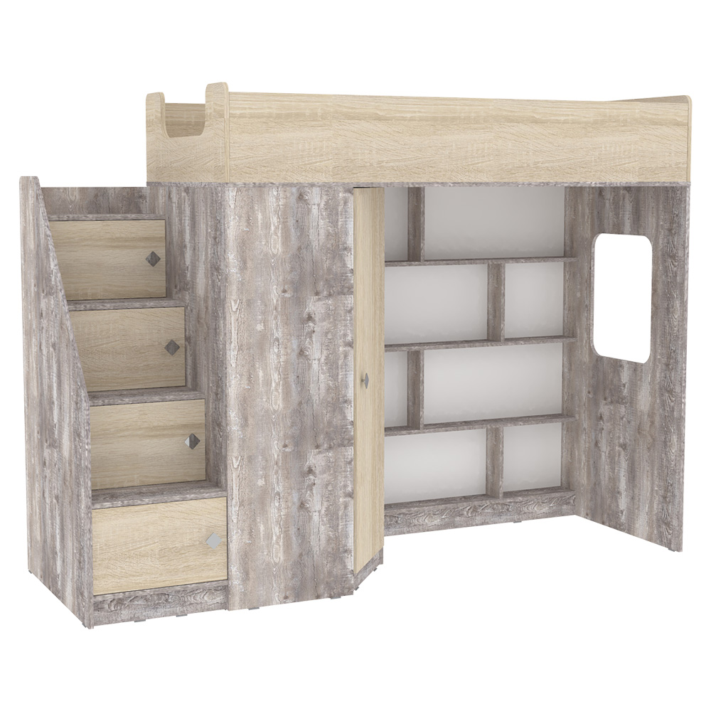 Кровать-чердак Л-В602.3 80х190 Бетон Дуб Сонома