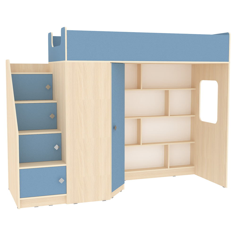 Кровать чердак Л-В602.3 – великолепный комплект мебели, решение для площади малых габаритов, экономия пространства. Комплект занимает немного места - решение для площади малых габаритов, экономия пространства. Высота кровати чердака 1677 мм. Под спальным местом располагается игровая зона – свой уголок для ребенка. В игровой зоне располагается стеллаж, отлично подходящий для хранения игрушек. Это очень удобно для поддержания порядка и сортировки предметов. Вместительный угловой шкаф для хранения одежды, белья, игрушек или иных вещей. Световое окно прямоугольной формы - дополнительное освещение, элемент для игры и возможность родителям наблюдать за ребенком. Интегрированная угловая лестница оснащена боковым бортиком и местами для хранения с ручками плавной формы, без острых углов. Мягкий противоударный кант – дополнительная безопасность для детей.Все цветные фасады со светло-бежевой кромкой. По вашему выбору комплект может быть собран как на левую, так и на правую сторону.Характеристики