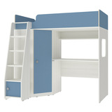 Кровать-чердак Л-В603.1 75х190 Белое Дерево Светло-синий, голубой