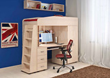 Кровать чердак Л-1 - это уже готовая комната для Вашего ребенка, которая совмещает в себе спальное место, полноценное рабочее пространство и вместительное место для одежды и мелочей. Основные параметры: • Габариты (Д*Г*В): 2248*846*1716 мм • Спальное место: 800*1900 мм • Высота борта: 296 мм • Ширина лестницы: 472 мм • Рекомендуемая высота матраса: 50-150 мм Комплектация: • кровать-чердак (спальное место 80х190 см., без матраса), размеры (Д*Г*В): 2248*846*1716 мм • шкаф с полкой и штангой для одежды, размеры (Д*Г*В): 600*846*1356 мм • письменный стол с выдвижной подставкой под клавиатуру, размеры (Д*Г*В): 1350*840*735 мм • стеллаж для книг, размеры (Д*Г*В): 1350*200*690 мм • тумба с 3-мя ящиками, размеры (Д*Г*В): 380*846*735 мм Модель универсальна - сторона определяется при сборке. На всех цветных фасадах светло-бежевая кромка. Матрасы в комплект не входят - приобретаются отдельно.Характеристики