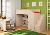 Г отовая комната для Вашего ребенка, которая совмещает в себе спальное место, вместительное место для одежды, выдвижной стол и игровую зону. Большое количество оттенков помогут подобрать мебель по вкусу ребенку и интерьеру комнаты, а большое разнообразие комплектаций и размеров поможет вписать детскую комнату даже в любую малогабаритную квартиру. Комплектация: • кровать-чердак (спальное место: 80х180 см., без матраса), размеры(Д*Г*В): 1845*834*1450 мм • встроенный стеллаж ( 3 полки ) • встроенный шкаф, размеры(Д*Г*В): 478*835*1080 мм •письменный стол Л-02, размеры(Д*Г*В): 800*600*735 мм • лестница прямая, размеры(Д*Г*В): 430*815*1075мм Основные параметры: • Габариты(Д*Г*В): 2275*834*1450мм • Высота борта: 355 мм • Ширина лестницы: 430 мм • Выступ лестницы: 815 мм • Рекомендуемая высота матраса: 50-150 мм Модель универсальна - сторона определяется при сборке. Матрасы в комплект не входят - приобретаются отдельно.Характеристики