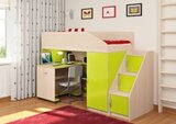 Г отовая комната для Вашего ребенка, которая совмещает в себе спальное место, вместительное место для одежды, выдвижной стол и игровую зону. Большое количество оттенков помогут подобрать мебель по вкусу ребенку и интерьеру комнаты, а большое разнообразие комплектаций и размеров поможет вписать детскую комнату даже в любую малогабаритную квартиру. Комплектация: • кровать-чердак (спальное место: 80х180 см., без матраса), размеры(Д*Г*В): 1845*834*1450 мм • встроенный стеллаж ( 3 полки ) • встроенный шкаф, размеры(Д*Г*В): 478*835*1080 мм •письменный стол Л-02, размеры(Д*Г*В): 800*600*735 мм • лестница прямая, размеры(Д*Г*В): 430*815*1075мм Основные параметры: • Габариты(Д*Г*В): 2275*834*1450мм • Высота борта: 355 мм • Ширина лестницы: 430 мм • Выступ лестницы: 815 мм • Рекомендуемая высота матраса: 50-150 мм Модель универсальна - сторона определяется при сборке. Матрасы в комплект не входят - приобретаются отдельно.Характеристики