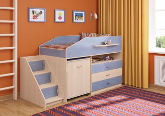 Г отовая комната для Вашего ребенка, которая совмещает в себе спальное место, вместительное место для одежды, выдвижной стол и игровую зону. Большое количество оттенков помогут подобрать мебель по вкусу ребенку и интерьеру комнаты, а большое разнообразие комплектаций и размеров поможет вписать детскую комнату даже в любую малогабаритную квартиру. Комплектация: • кровать-чердак (спальное место: 80 х 160 см., без матраса), размеры (Д*Г*В): 1652*846*1145 мм • встроенный комод, размеры(Д*Г*В): 1010*486*770 мм • встроенный пенал, размеры(Д*Г*В): 360*500*770 мм • маленький письменный стол, размеры(Д*Г*В): 800*600*735 мм • лестница угловая с фасадами, размеры(Д*Г*В): 420*812*770 мм Основные параметры: • Габариты(Д*Г*В):2072*956*1145 мм • Высота борта: 355 мм • Ширина лестницы: 420 мм • Выступ лестницы: 812 мм • Рекомендуемая высота матраса: 50-150 мм Модель универсальна - сторона определяется при сборке. Матрасы в комплект не входят - приобретаются отдельно.Характеристики