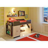 Вы можете купить Кровать-чердак КарИВи Легенда 2.4 с полками Дуб Молочный Венге оптом в нашем магазине, предложим цену с оптовой скидкой.