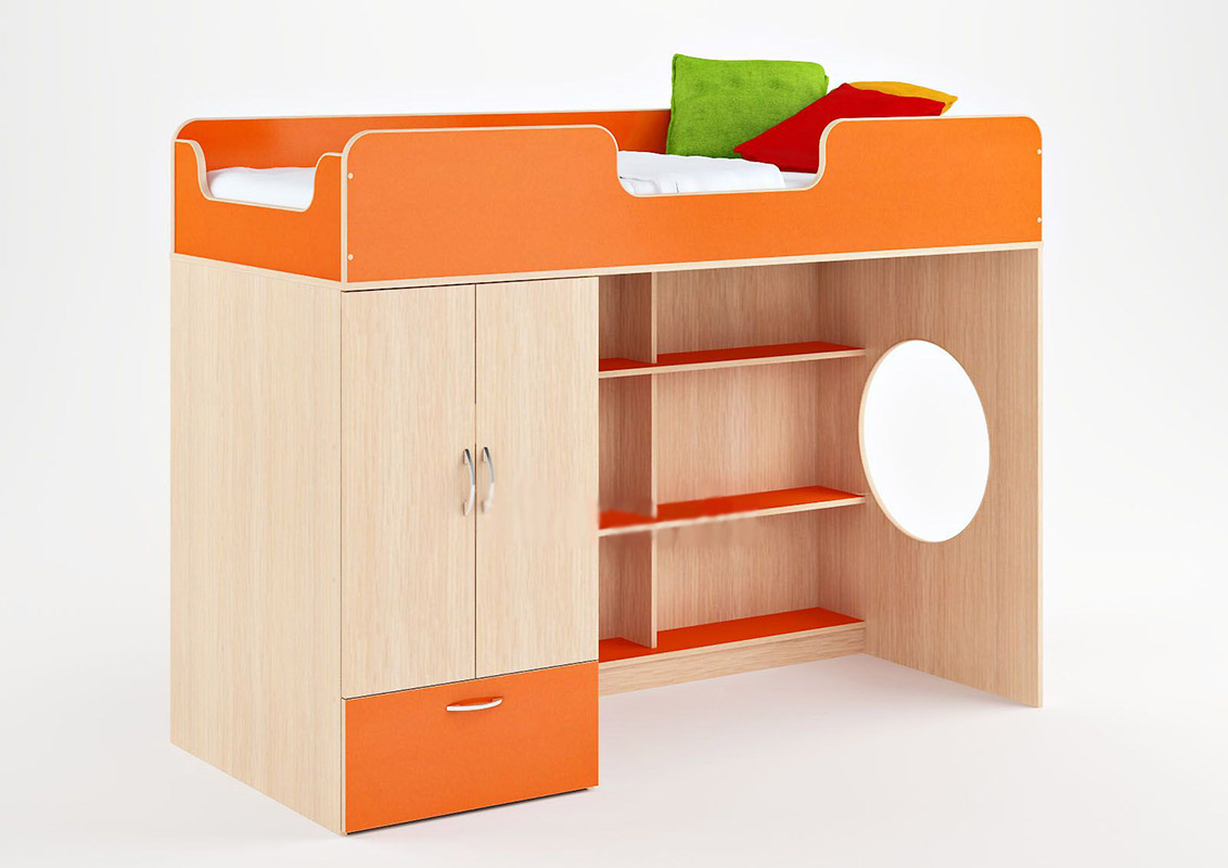 Г отовая комната для Вашего ребенка, которая совмещает в себе спальное место, вместительное место для одежды, выдвижной стол и игровую зону. Большое количество оттенков помогут подобрать мебель по вкусу ребенку и интерьеру комнаты, а большое разнообразие комплектаций и размеров поможет вписать детскую комнату даже в любую малогабаритную квартиру. Комплектация: • кровать-чердак (спальное место 80х180 см., без матраса), размеры(Д*Г*В): 1840*831*1395 мм • шкаф с полкой для одежды, размеры(Д*Г*В): 600*1080*834 мм • стеллаж для книг, размеры(Д*Г*В): 1248*130*1076 мм Основные параметры: • Игровая зона(Д*Г*В): 1248*1076*834 мм • Спальное место: 80*1800 мм • Высота борта: 300 мм • Рекомендуемая высота матраса: 50-150 мм Модель универсальна - сторона определяется при сборке. На цветных фасадах светло-бежевая кромка. Матрасы в комплект не входят - приобретаются отдельно.Характеристики