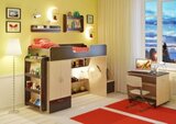 Детская мебель "Легенда" - это уже г отовая комната для Вашего ребенка, которая совмещает в себе спальное место, вместительное место для одежды, выдвижной стол и игровую зону. Большое количество оттенков помогут подобрать мебель по вкусу ребенку и интерьеру комнаты, а большое разнообразие комплектаций и размеров поможет вписать детскую комнату даже в любую малогабаритную квартиру. Комплектация: - Кровать чердак Л-3: 600×834×1076 - Лестница угловая ЛУ-11: 430×815×1075 - Фасады ЛУ-11: 388х254х16 - Стол Л-02: 800х600х735 - Полка Л-01: 800х156х140 - Полка Л-02: 626х150х476 - Полка Л-04: 626х150х1126 Модель универсальна - сторона определяется при сборке. Матрасы в комплект не входят - приобретаются отдельно.Характеристики