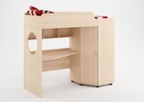 Г отовая комната для Вашего ребенка, которая совмещает в себе спальное место, вместительное место для одежды, выдвижной стол и игровую зону. Большое количество оттенков помогут подобрать мебель по вкусу ребенку и интерьеру комнаты, а большое разнообразие комплектаций и размеров поможет вписать детскую комнату даже в любую малогабаритную квартиру. Комплектация: • кровать-чердак (спальное место: 80х190 см., без матраса), размеры (Д*Г*В): 1952*846*1716 мм • встроенный шкаф, размеры(Д*Г*В): 846*726*1405 мм • стеллаж для книг • встроенный стол, размеры (Д*Г*В): 846*1226*780 мм Основные параметры: • Габариты(Д*Г*В): 1952*1146*1716 мм • Спальное место: 800*1900 мм • Высота борта: 300 мм • Рабочая зона(Д*Г*В): 1226*846*1416 мм • Рекомендуемая высота матраса: 50-150 мм Модель универсальна - сторона определяется при сборке. Матрасы в комплект не входят - приобретаются отдельно.Характеристики
