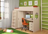 Г отовая комната для Вашего ребенка, которая совмещает в себе спальное место, вместительное место для одежды, выдвижной стол и игровую зону. Большое количество оттенков помогут подобрать мебель по вкусу ребенку и интерьеру комнаты, а большое разнообразие комплектаций и размеров поможет вписать детскую комнату даже в любую малогабаритную квартиру. Комплектация: • кровать-чердак (спальное место: 80х190 см., без матраса), размеры(Д*Г*В): 1952*846*1716 мм • встроенный шкаф, размеры(Д*Г*В): 846*726*1405 мм • выкатная тумба, размеры(Д*Г*В): 238*465*600 мм • встроенный стол, размеры(Д*Г*В): 846*1226*780 мм • лестница прямая ЛП-04, размеры (Д*Г*В): 476*300*1416 мм Основные параметры: • Габариты(Д*Г*В): 1952*846*1716 мм • Спальное место: 800*1900 мм • Высота борта: 300 мм • Рабочая зона(Д*Г*В): 1226*846*1416 мм • Ширина лестницы: 472 мм • Выступ лестницы: 300 мм • Рекомендуемая высота матраса: 50-150 мм Модель универсальна - сторона определяется при сборке. Матрасы в комплект не входят - приобретаются отдельно.Характеристики