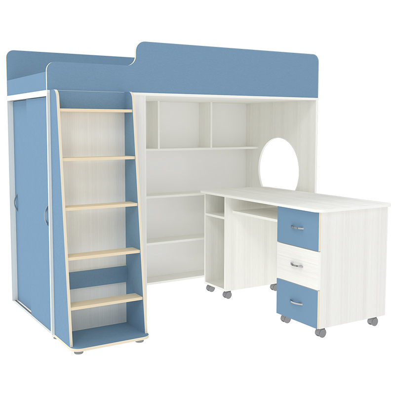 Кровать-чердак Легенда 5.2 Белое Дерево Светло-синий, голубой