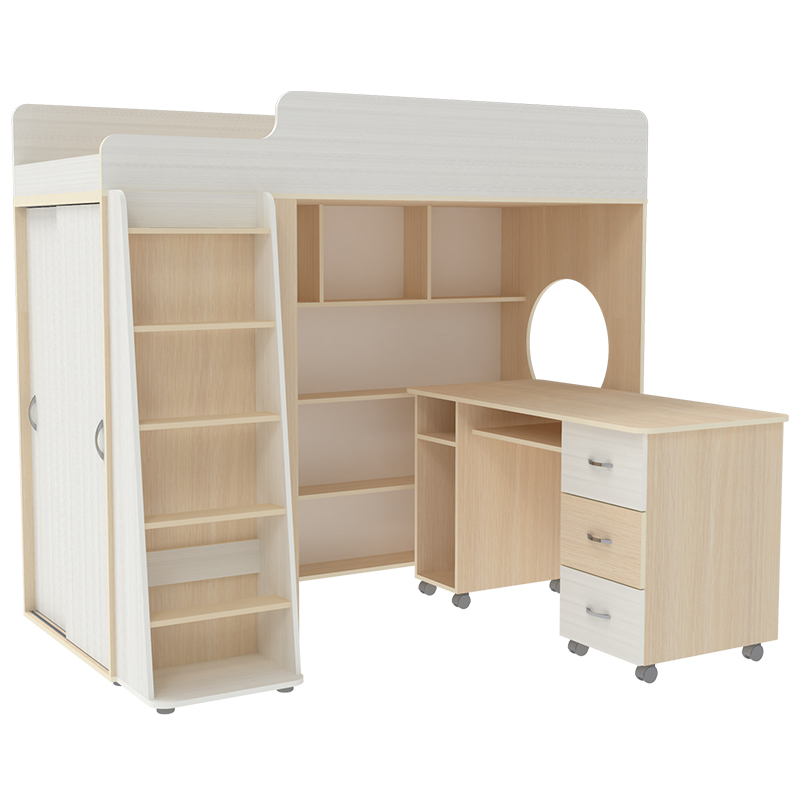 Г отовая комната для Вашего ребенка, которая совмещает в себе спальное место, полноценное рабочее пространство и вместительное место для одежды и мелочей. Большое количество оттенков помогут подобрать мебель по вкусу ребенку и интерьеру комнаты, а большое разнообразие комплектаций и размеров поможет вписать детскую комнату даже в любую малогабаритную квартиру. Комплектация: • кровать-чердак (спальное место: 80х190 см., без матраса), размеры(Д*Г*В): 1952*846*1716 мм • письменный стол, размеры(Д*Г*В): 1310*600*750 мм • шкаф для одежды, размеры (Д*Г*В): 600*846*1400 мм • лестница прямая ЛП-04, размеры (Д*Г*В): 476*300*1416 мм Основные параметры: • Габариты(Д*Г*В): 1952*1142*1716 мм • Спальное место: 80*1900 мм • Высота борта: 296 мм • Ширина лестницы: 472 мм • Рекомендуемая высота матраса: 50-150 мм Модель универсальна - сторона определяется при сборке. Матрасы в комплект не входят - приобретаются отдельно.Характеристики