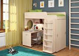 Г отовая комната для Вашего ребенка, которая совмещает в себе спальное место, полноценное рабочее пространство и вместительное место для одежды и мелочей. Большое количество оттенков помогут подобрать мебель по вкусу ребенку и интерьеру комнаты, а большое разнообразие комплектаций и размеров поможет вписать детскую комнату даже в любую малогабаритную квартиру. Комплектация: • кровать-чердак (спальное место: 80х190 см., без матраса), размеры (Д*Г*В): 1952*846*1716 мм • встроенный шкаф, размеры(Д*Г*В): 846*600*1416 мм • стеллаж для книг • дополнительный выкатной стол, размеры(Д*Г*В): 800*600*735 мм Основные параметры: • Габариты(Д*Г*В): 1952*1146*1716 мм • Дополнительный выкатной стол(Д*Г*В): 800*600*735 мм • Высота борта: 300 мм • Игровая зона(Д*Г*В): 1352*846*1400 мм • Ширина лестницы: 476 мм • Выступ лестницы: 300 мм • Рекомендуемая высота матраса: 50-150 мм Модель универсальна - сторона определяется при сборке. Матрасы в комплект не входят - приобретаются отдельно.Характеристики