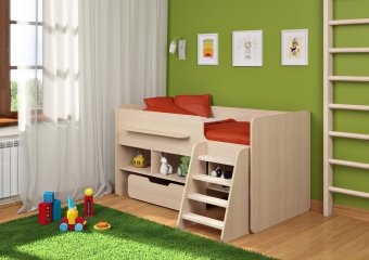 Г отовая комната для Вашего ребенка, которая совмещает в себе спальное место, вместительное место для одежды, выдвижной стол и игровую зону. Большое количество оттенков помогут подобрать мебель по вкусу ребенку и интерьеру комнаты, а большое разнообразие комплектаций и размеров поможет вписать детскую комнату даже в любую малогабаритную квартиру. Комплектация: • кровать-чердак (спальное место 80х160 см., без матраса) • полка • стеллаж для книг • лестница • выкатной ящик для игрушек Основные параметры: • Габаритные размеры (Д*Г*В): 1645*1230*900 мм • Спальное место: 800*1600 мм • Высота борта: 300 мм • Ширина лестницы: 462 мм • Рекомендуемая высота матраса: 50-150 мм Модель универсальна - сторона определяется при сборке. Матрасы в комплект не входят - приобретаются отдельно.Характеристики