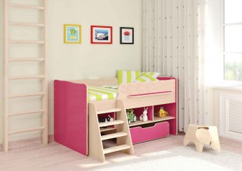 Г отовая комната для Вашего ребенка, которая совмещает в себе спальное место, вместительное место для одежды, выдвижной стол и игровую зону. Большое количество оттенков помогут подобрать мебель по вкусу ребенку и интерьеру комнаты, а большое разнообразие комплектаций и размеров поможет вписать детскую комнату даже в любую малогабаритную квартиру. Комплектация: • кровать-чердак (спальное место 80х160 см., без матраса) • полка • стеллаж для книг • лестница • выкатной ящик для игрушек Основные параметры: • Габаритные размеры (Д*Г*В): 1645*1230*900 мм • Спальное место: 800*1600 мм • Высота борта: 300 мм • Ширина лестницы: 462 мм • Рекомендуемая высота матраса: 50-150 мм Модель универсальна - сторона определяется при сборке. Матрасы в комплект не входят - приобретаются отдельно.Характеристики