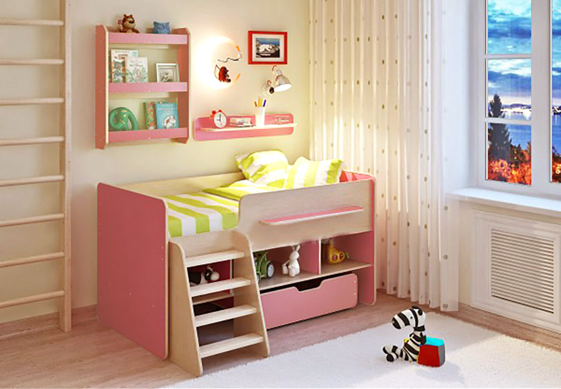 Готовая комната для Вашего ребенка, которая совмещает в себе спальное место, вместительное место для одежды, выдвижной стол и игровую зону. Большое количество оттенков помогут подобрать мебель по вкусу ребенку и интерьеру комнаты, а большое разнообразие комплектаций и размеров поможет вписать детскую комнату даже в любую малогабаритную квартиру. Комплектация: - Кровать Л-6 1645х900х900 - Лестница 462×355×668 - Ящик 840×810×240 - Полка на кровати - Полка Л-01 800х156х140 - Полка Л-03 626хх150х800 Модель универсальна - сторона определяется при сборке. Матрасы в комплект не входят - приобретаются отдельно.Характеристики
