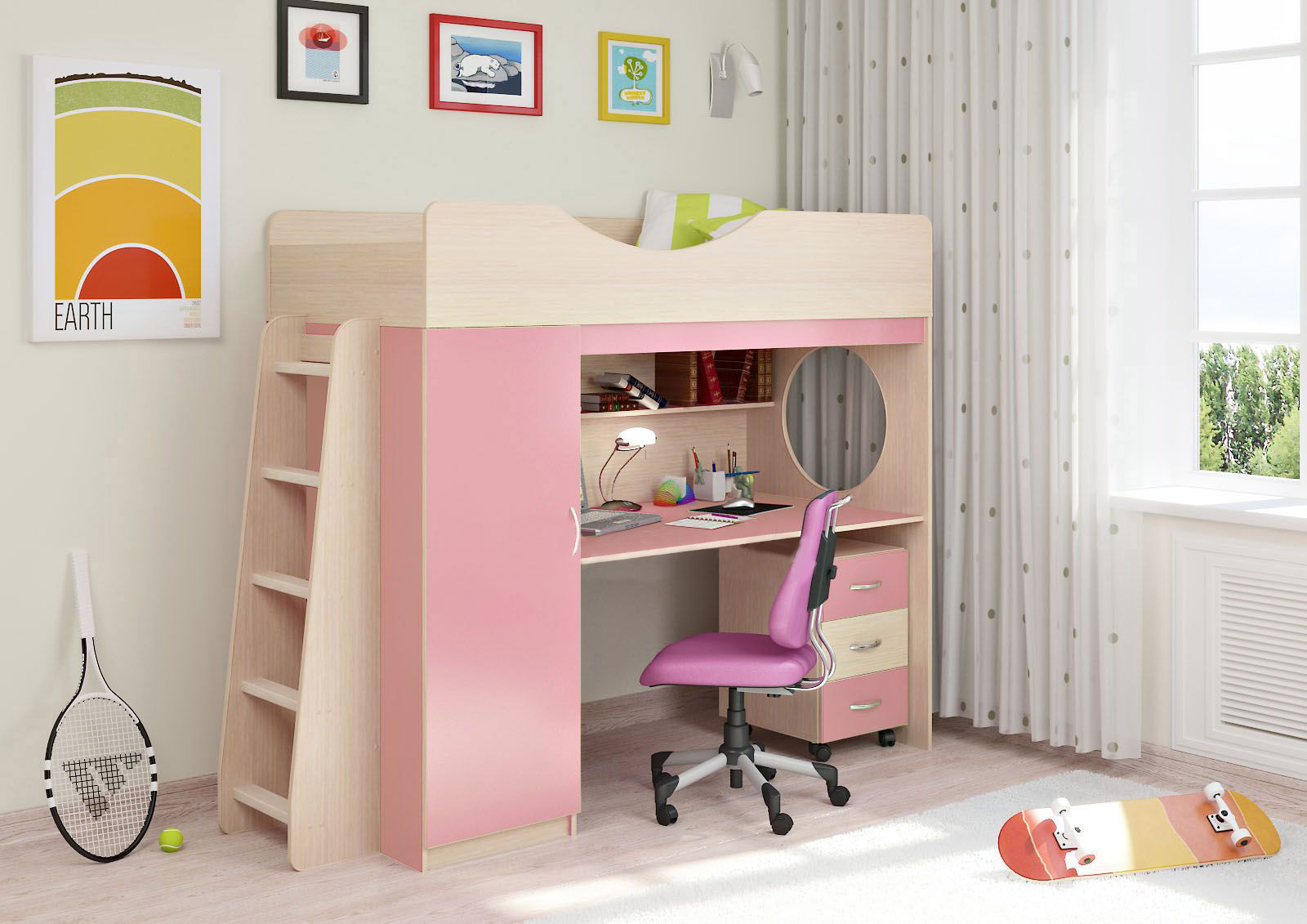 Кровать-чердак Легенда 9.2 Дуб Молочный Розовый