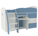 Кровать-чердак Малыш 2 Белое Дерево Светло-синий, голубой