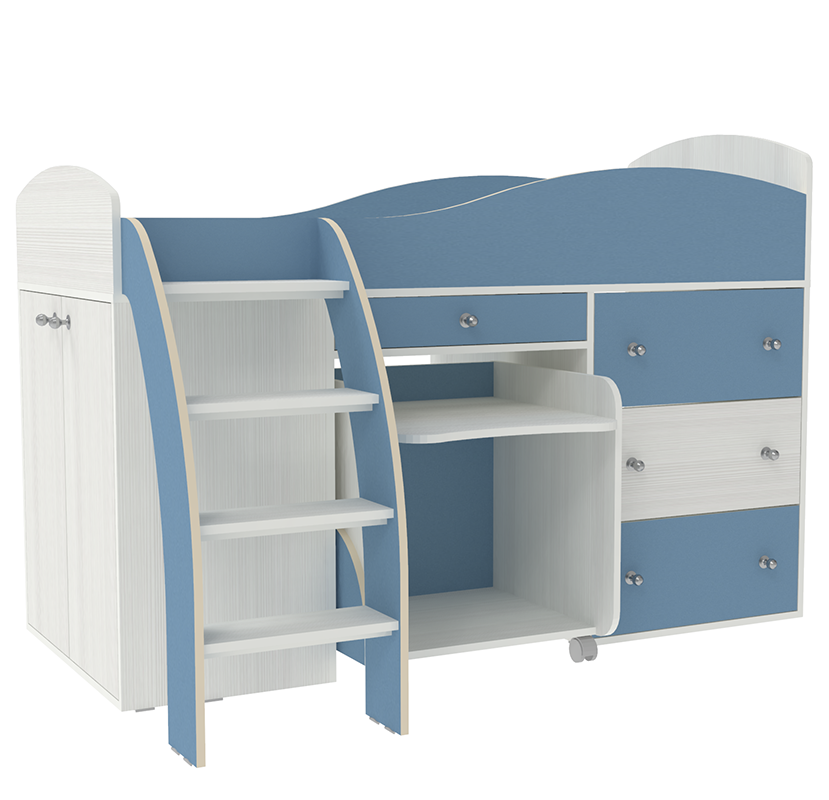 Вы можете купить Кровать-чердак КарИВи Малыш 2 Белое Дерево Светло-синий, голубой оптом в нашем магазине, предложим цену с оптовой скидкой.