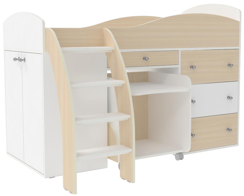 Кровать-чердак Малыш 2 Белый Дуб Молочный