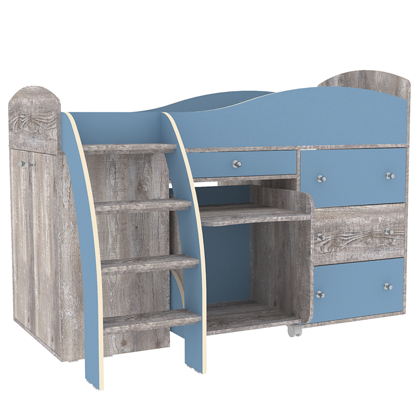 Вы можете купить Кровать-чердак КарИВи Малыш 2 Бетон Светло-синий, голубой оптом в нашем магазине, предложим цену с оптовой скидкой.