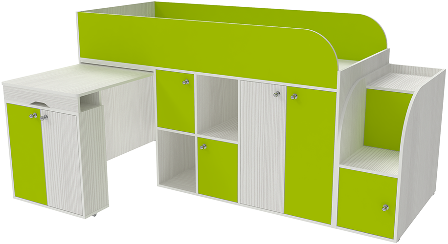 Кровать-чердак Малыш 3 Белое Дерево Лайм