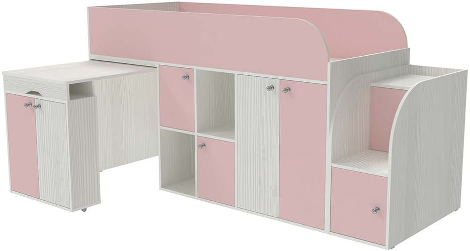 Кровать-чердак Малыш 3 Белое Дерево Розовый