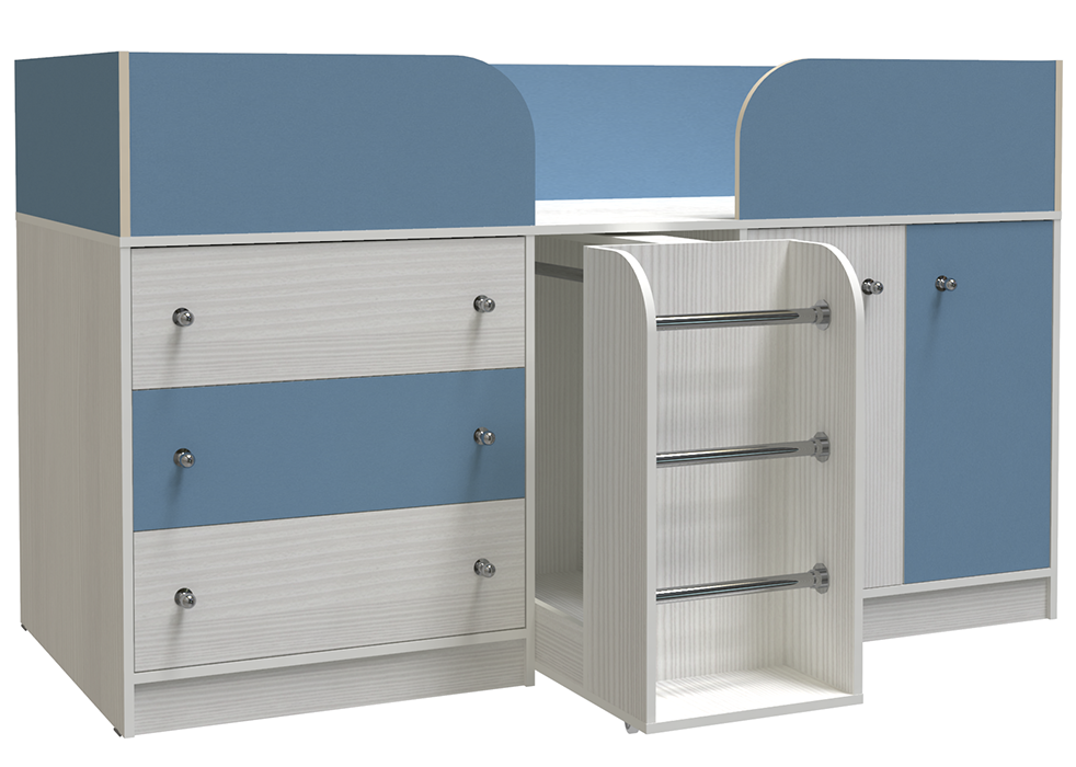 Кровать-чердак Малыш 4 Белое Дерево Светло-синий, голубой