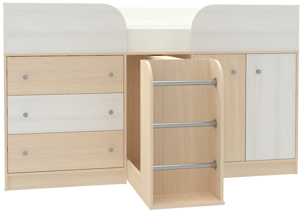 Кровать чердак Малыш 4 решает проблему малого пространства сочетая в себе целый ряд функций: кровать, большой шкафчик для вещей или игрушек, комод с 3-я глубокими ящиками, а так же выдвижную лестницу-гардероб. Мебель изготовлена из ламинированного ДСП, с использованием кромки АБС, что позволяет продлить срок службы изделию и сохранить внешний вид. На цветных фасадах светло-бежевая кромка. Являясь малогабаритной, компактной и многофункциональнойкроваткой Малыш 4станет великолепным решением для небольшой детской комнаты. У мебелидля малышей нет острых углов, о которые ребенок может больно удариться. Кровати-чердаки обязательно оборудованы ограничителями, которые не дадут ребенку случайно упасть с кровати. разумеется, особое внимание компанияуделяет прочности и надежности производимой мебели. Модель универсальна - сторона определяется при сборке. Матрасы в комплект не входят - приобретаются отдельно.Характеристики