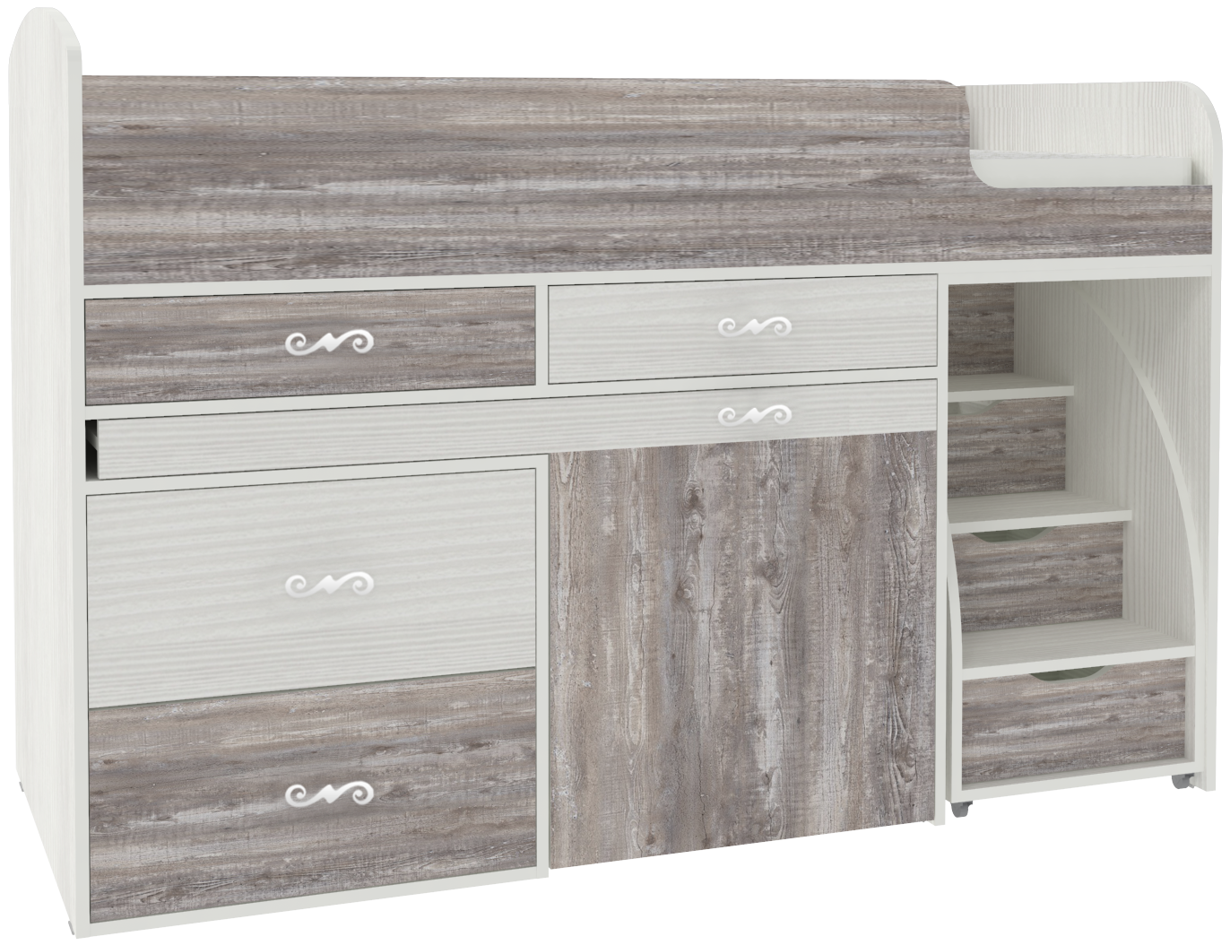 Кровать-чердак Малыш 6 Белое Дерево Бетон