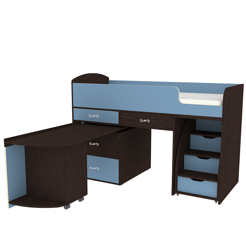 Кровать-чердак Малыш 6 Венге Светло-синий, голубой