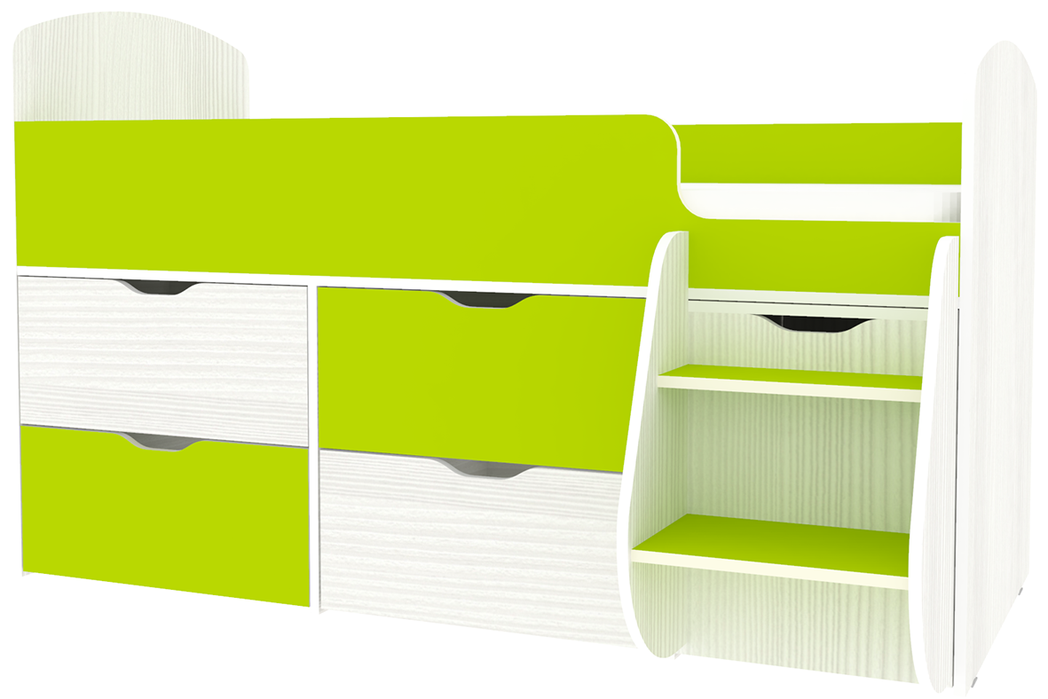 Кровать-чердак Малыш 7 Белое Дерево Лайм