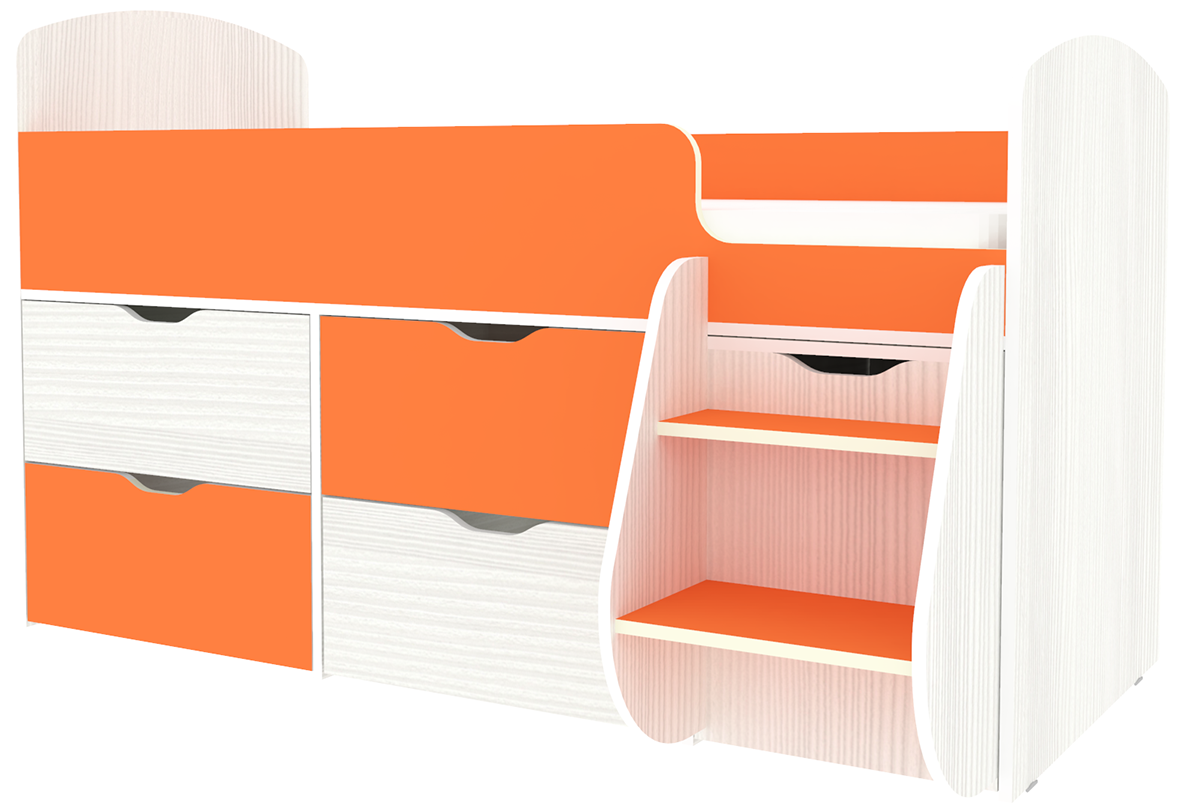 Кровать-чердак Малыш 7 Белое Дерево Оранжевый