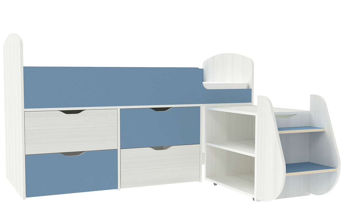 Кровать-чердак Малыш 7 Белое Дерево Светло-синий, голубой