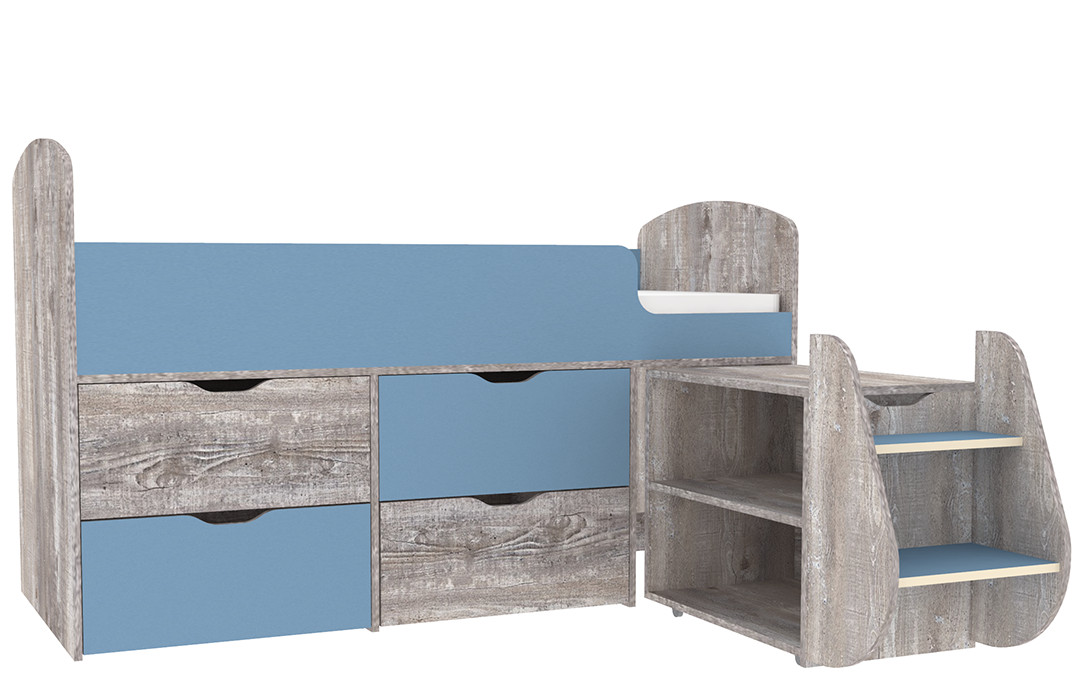 Вы можете купить Кровать-чердак КарИВи Малыш 7 Бетон Светло-синий, голубой оптом в нашем магазине, предложим цену с оптовой скидкой.