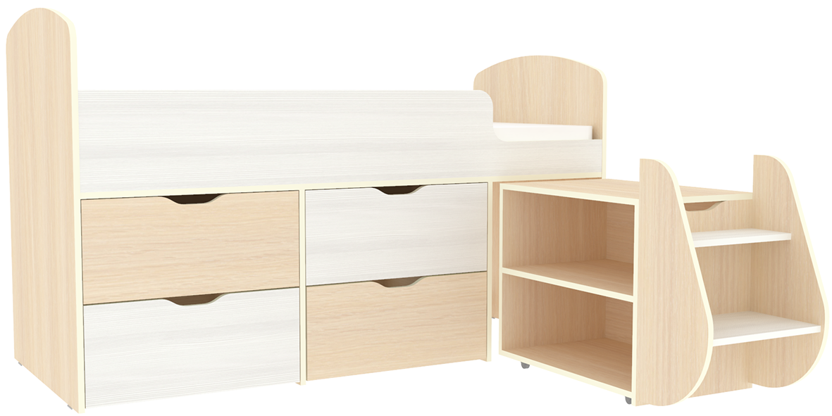 Компактная кровать Малыш 7 создаст уютное гнездышко для вашего ребенка. Разнообразие цветовой гаммы порадует всех членов семьи - от самых ярких сочетаний до сдержанной цветовой гаммы. Безопасные бортики и небольшая высота сделаны специально для детей разных возрастов. Четыре выдвижных ящика помогут вам всегда хранить личные вещи и игрушки ребенка в собранном виде. На цветных фасадах: цвет кромки - бежевый. Мебель изготовлена из ламинированного ДСП, с использованием кромки АБС, что позволяет продлить срок службы изделию и сохранить внешний вид. Кровать чердак Малыш 7 это: Компактность-– минимум площади в комнате Экологичность – все материалы и фурнитура сертифицированы для производства детской мебели Безопасность – отсутствие острых углов с использованием кромки АБС 1мм исключает возможность травмирования детей в процессе эксплуатации Надежность – использование качественной импортной фурнитуры и длительный гарантийный срок 24 месяца Качество – изготовление на высокотехнологичном оборудовании европейского производства Экономичность – сокращение времени по подбору и поиску, а так же средств на необходимом наборе мебели для ребенка (приобретая по отдельности набор обойдется существенно дороже.Характеристики