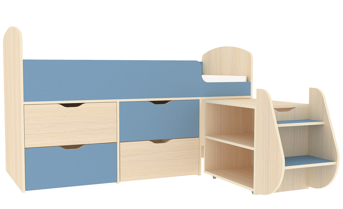 Компактная кровать Малыш 7 создаст уютное гнездышко для вашего ребенка. Разнообразие цветовой гаммы порадует всех членов семьи - от самых ярких сочетаний до сдержанной цветовой гаммы. Безопасные бортики и небольшая высота сделаны специально для детей разных возрастов. Четыре выдвижных ящика помогут вам всегда хранить личные вещи и игрушки ребенка в собранном виде. На цветных фасадах: цвет кромки - бежевый. Мебель изготовлена из ламинированного ДСП, с использованием кромки АБС, что позволяет продлить срок службы изделию и сохранить внешний вид. Кровать чердак Малыш 7 это: Компактность-– минимум площади в комнате Экологичность – все материалы и фурнитура сертифицированы для производства детской мебели Безопасность – отсутствие острых углов с использованием кромки АБС 1мм исключает возможность травмирования детей в процессе эксплуатации Надежность – использование качественной импортной фурнитуры и длительный гарантийный срок 24 месяца Качество – изготовление на высокотехнологичном оборудовании европейского производства Экономичность – сокращение времени по подбору и поиску, а так же средств на необходимом наборе мебели для ребенка (приобретая по отдельности набор обойдется существенно дороже.Характеристики