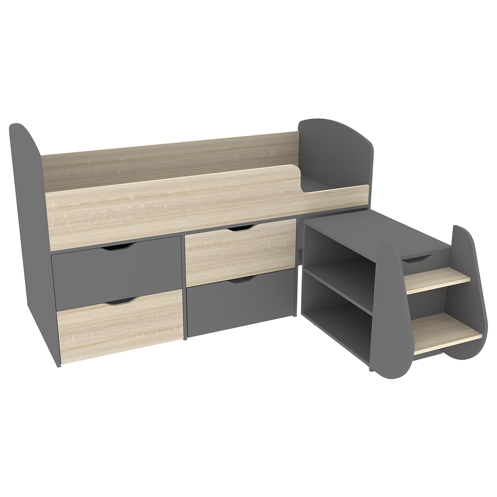 Кровать-чердак Малыш 7 Темно-серый Дуб Сонома