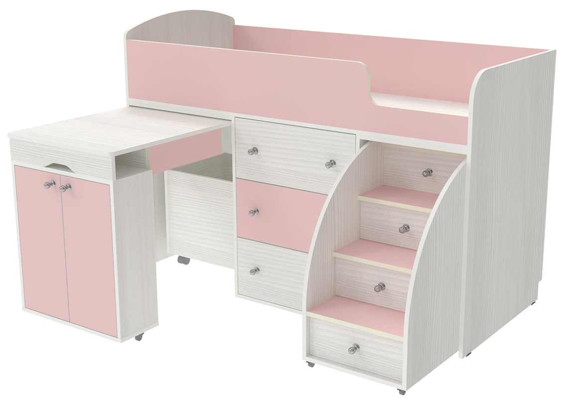 Кровать-чердак Малыш Белое Дерево Розовый